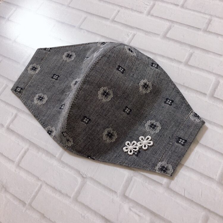 ストライプのグレーマスクはシワになりにくくお手入れも楽ちんっ٩(ˊᗜˋ*)و