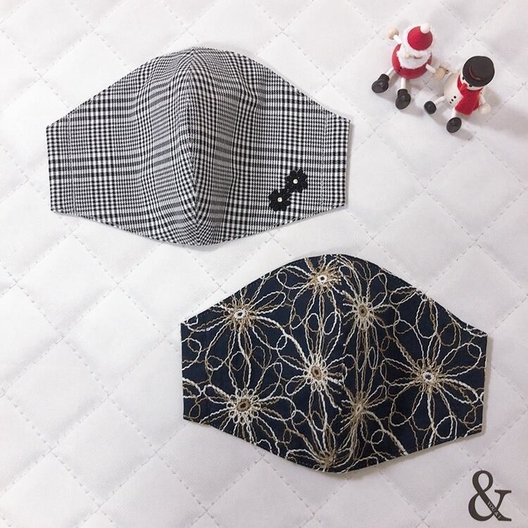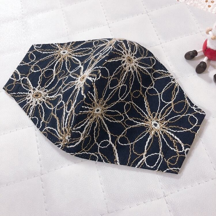 大きめ新作グランチェック、花柄刺繍ネイビー