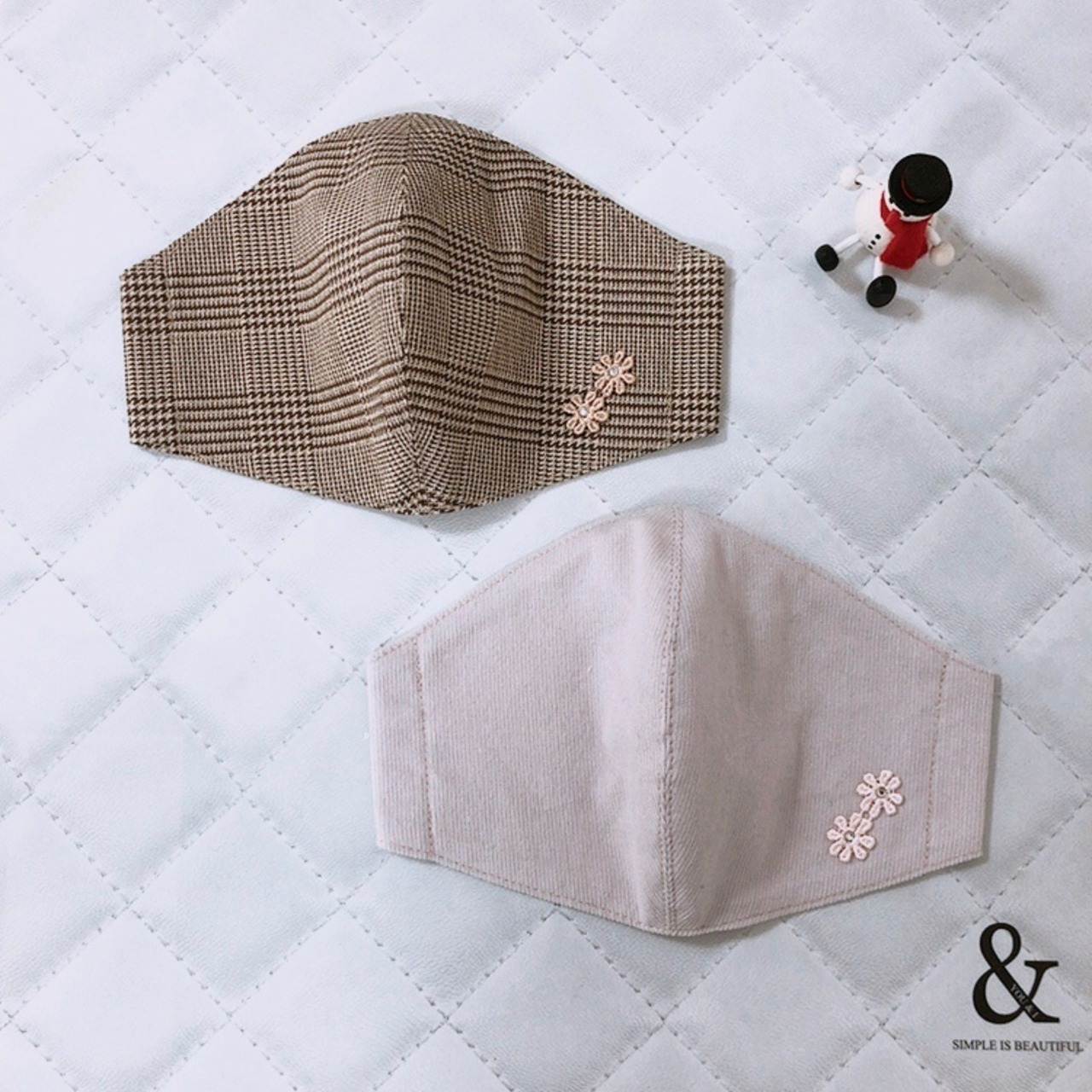 人気のグレンチェックのブラウンと、コーデュロイマスクです。