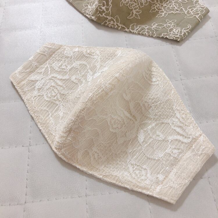 上品なバラチュールと、オリーブ色に薔薇の刺繍が入ったマスクです٩(ˊᗜˋ*)و