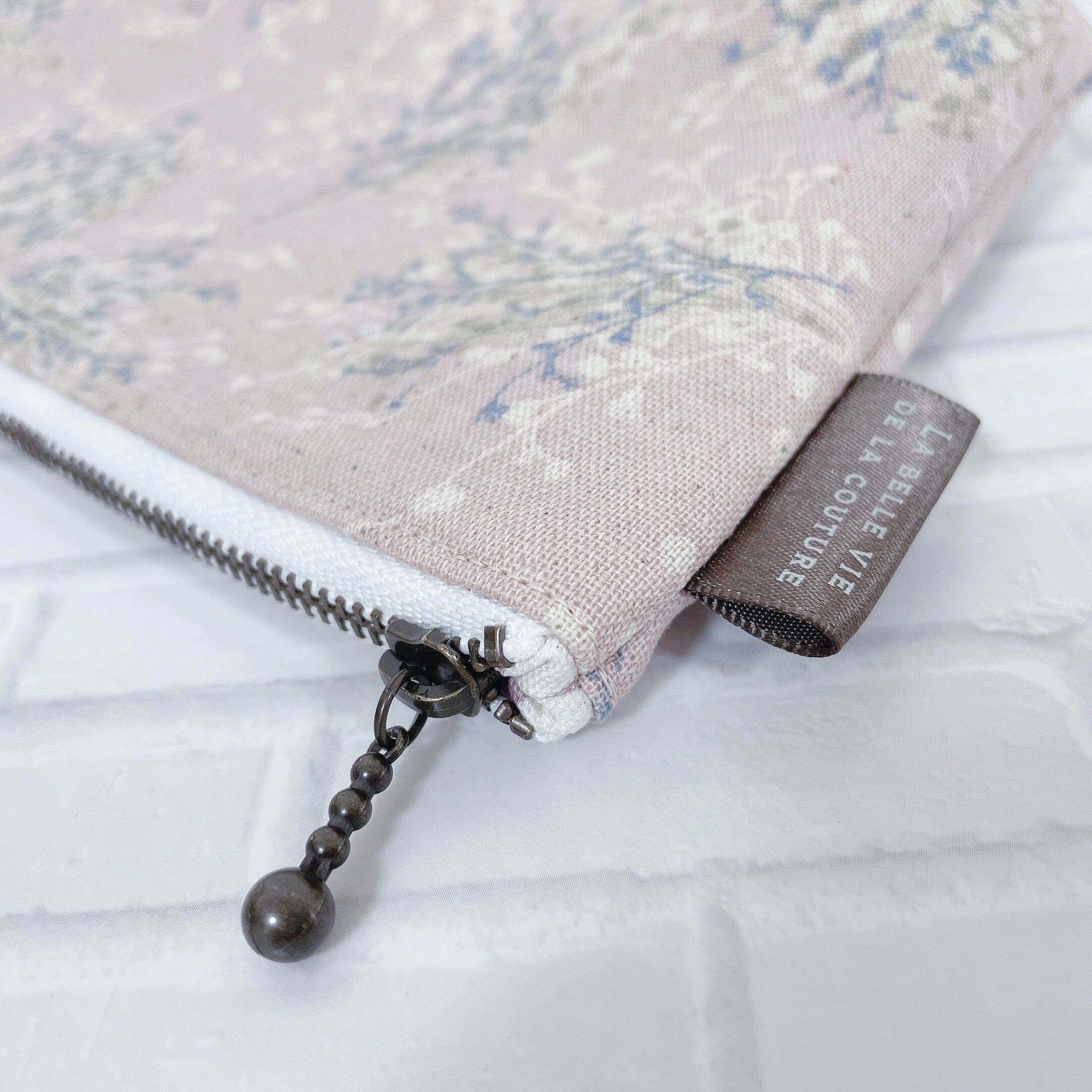 くすみカラーのかすみ草柄で、ふんわりシルエットのポーチを作りました♪